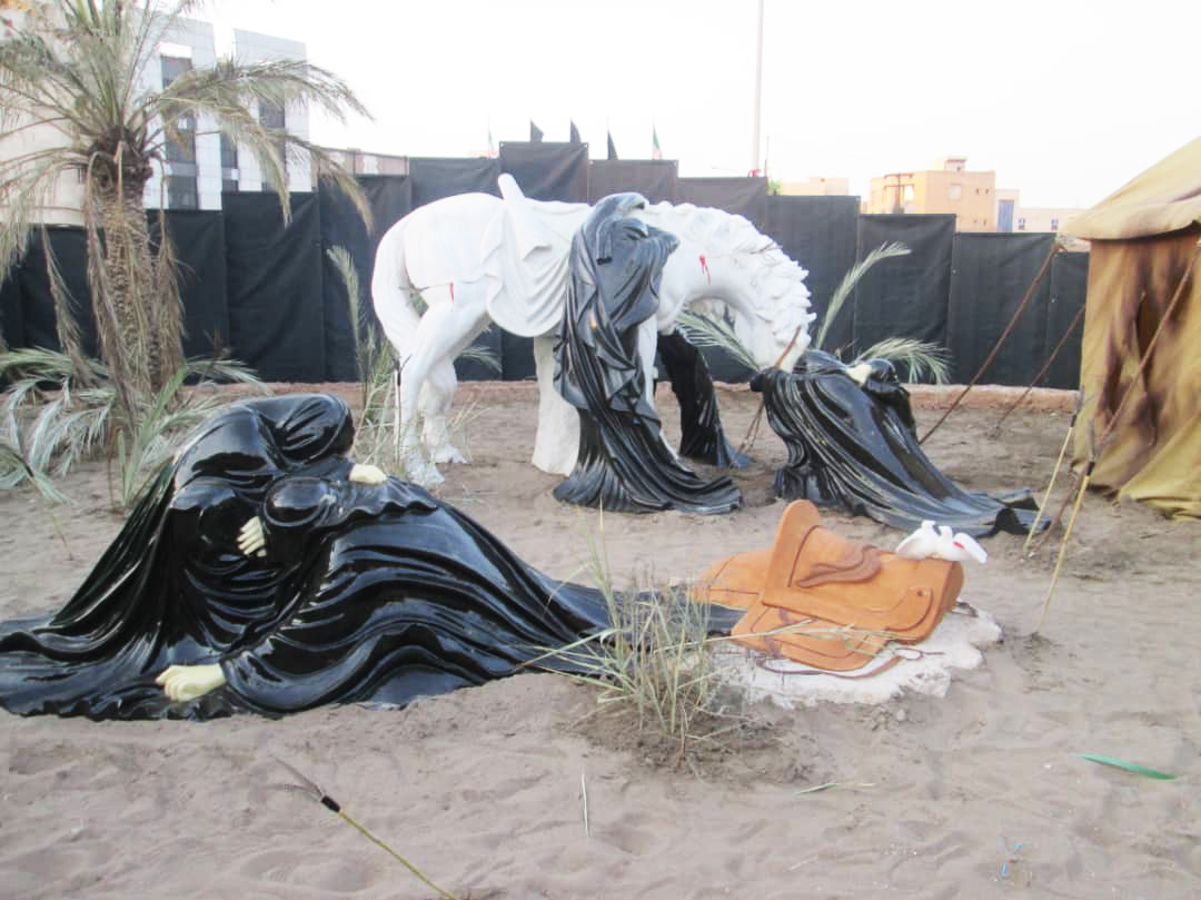 وی افزود: این صحنه توسط شهرداری اهواز و با همت شورای شهر و هنرمندان خیری که توانستند این تندیس را از سنگ خالص و با رنگی بسیار شفاف و زیبا بسازند اینجا نصب شد تا در شهر کربلایی اهواز نمادی از عصر عاشورا شود.